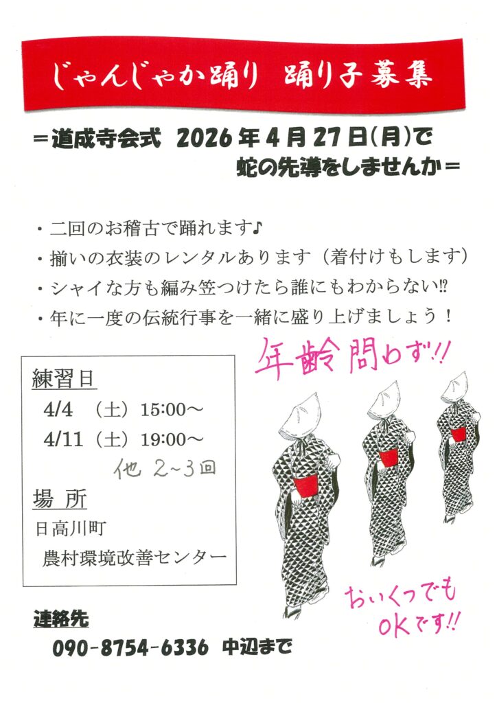 道成寺会式じゃんじゃか踊りの踊り子を募集
